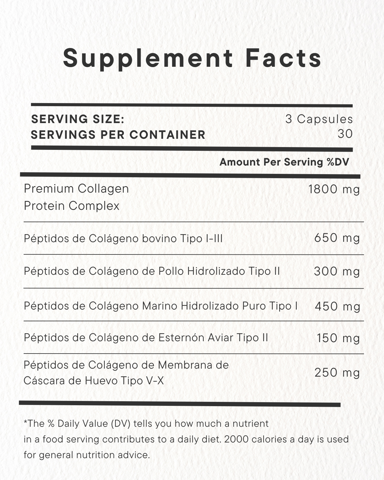 Contiene 5 tipos de colágeno en una sola fórmula.